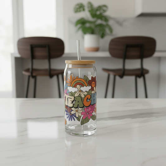 16oz Whimsical Mushroom Glass Tumbler with Bamboo Lid & Straw