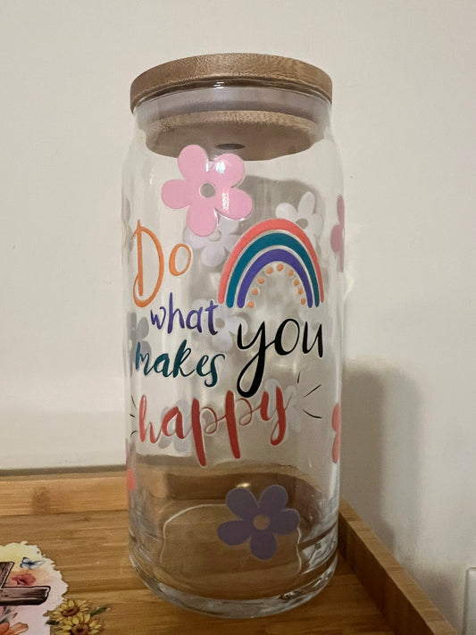 Smiley Faces, Rainbows and Flowers 20oz Glass Tumbler