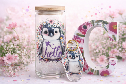Floral Penguin Motel Keychain – Cute Acrylic Penguin Key Ring
