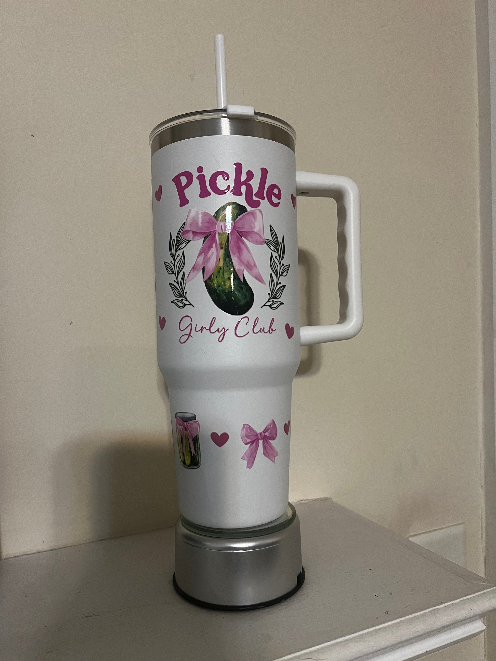 Step into your soft, sassy, and slightly pickle-obsessed era with this Coquette Pickle Girly Club 40oz Stainless Steel Tumbler β the ultimate blend of cute and confident! π π